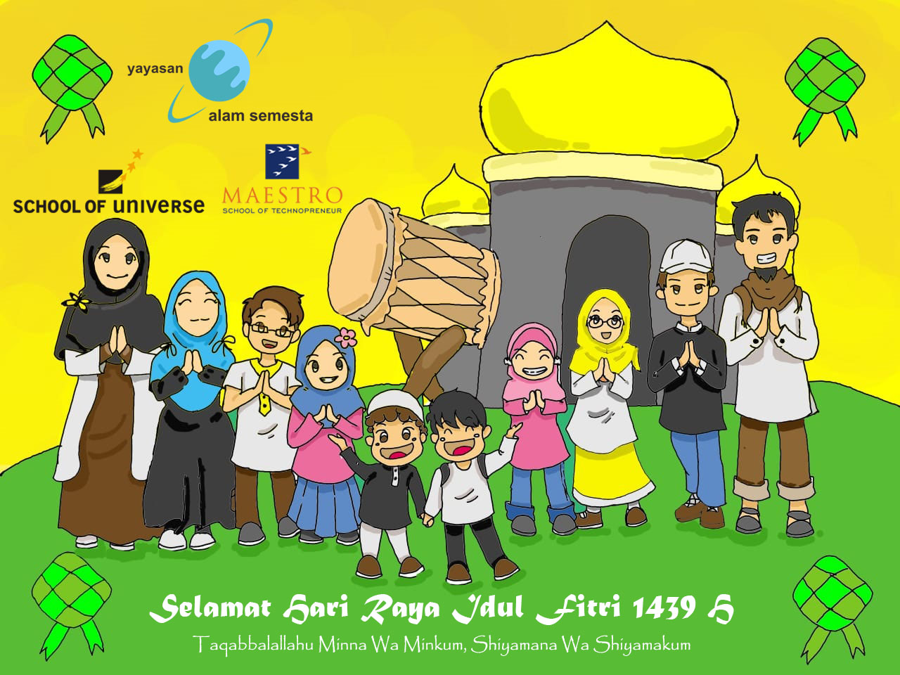 Segenap Pengurus Yayasan Alam Semesta, Manajemen School of Universe dan Maestro School of Technopreneur, seluruh Staf dan Facilitator serta civitas School of Universe dan Maestro School of Technopreneur mengucapkan Selamat Hari Raya Idul Fitri 1439 H. Taqabbalallahu Minna Wa Minkum, mohon maaf lahir dan bathin. Semoga kita dapat dipertemukan kembali dengan Ramadhan yang akan datang, Aamiin.
