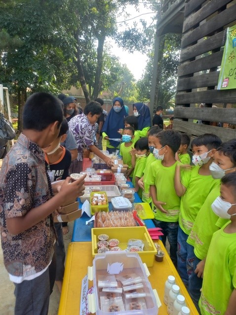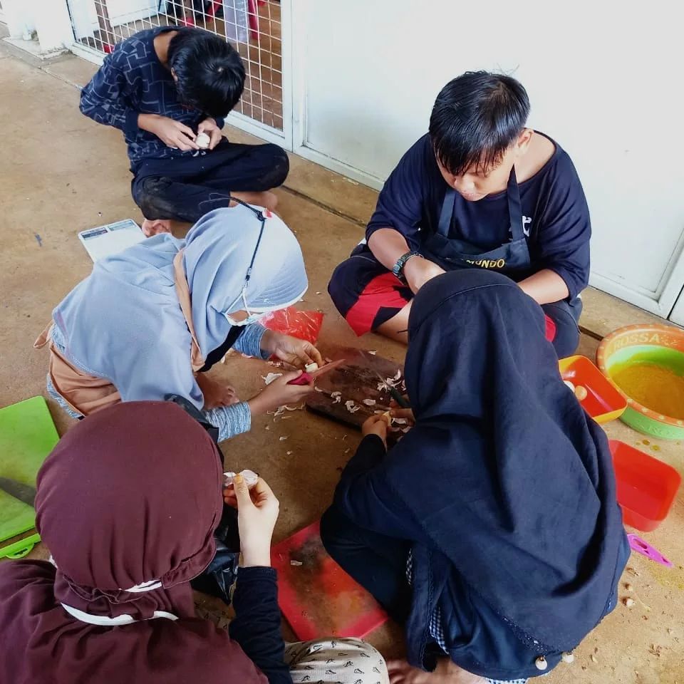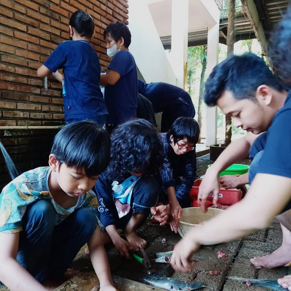Oh iya, mereka tidak sekedar menjual ikan lele saat panen saja, namun ikan lele tersebut akan dijual dalam bentuk lele yang siap dimasak karena sudah diberi bumbu lho. Selain menyiapkan lele bumbu kuning untuk dijual, mereka juga menyiapkan untuk masak bersama nanti bersama fasilitator dan teman-teman SD4. Siapa yang masak? ya mereka dong, kan ada cooking class, sebuah kegiatan masak bersama di kelas.