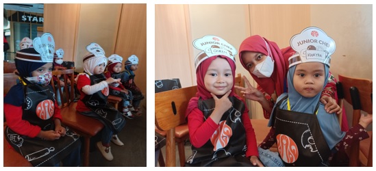 Dalam melakukan outing ini selain mengenalkan anak-anak tentang bentuk dan warna juga melatih kesabaran si kecil Ternyata untuk bisa menikmati donat J.CO yang begitu lezat banyak proses yang harus dilakukan didalamnya. Dalam outing anak-anak juga diberikan woorksheet oleh Fasilitator kelas untuk menggambar bentuk donat dan mewarnai gambar donat sesuai dengan yang sudah mereka praktikan tadi.