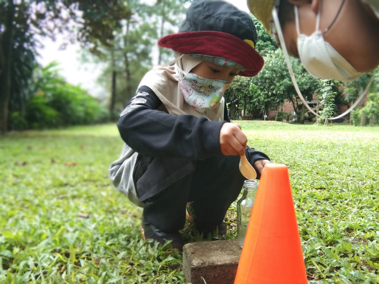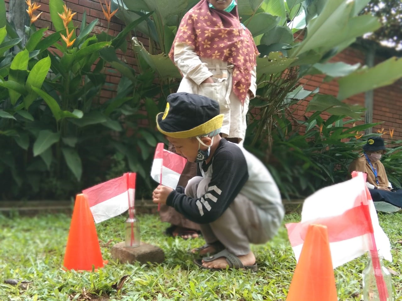 Selesai memasang tenda dilanjutkan dengan snack time dan berlanjut ke kegiatan outbound. Untuk kegiatan outbound yang pertama yaitu tracking. Tracking kali ini kita hanya berkeliling di sekitar lingkungan SoU sambil mengenal dan mempelajari tumbuhan-tumbuhan yang ada di SoU sambil menyuarakan yel-yel yang dibuat oleh masing-masing kelompok, wahhhh sangat mengasikkan kan tentunya. Nahhh setelah tracking teman-teman diminta untuk istirahat, shalat duhur dan makan siang, selesai ishoma teman-teman melanjutkan kegiatannya, yaitu outbound, kali ini outboundnya adalah two line bridge dan landing net. Disini teman-teman dilatih keberaniannya dan konsentrasinya. Oh iya perlu diketahui teman-teman bahwa setelah selesai dan sebelum kegiatan seluruh area yang kita gunakan di semprot oleh disinfektan.