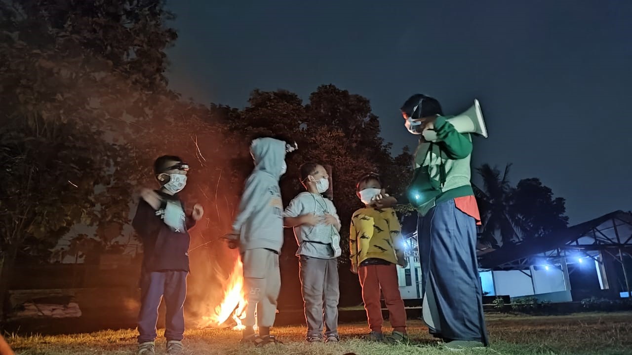 Selesai melakukan kegiatan outbound higt impact, teman-teman melaksanakan shalat ashar dan snack, lalu dilanjut dengan kegiatan outbound low impact yaitu bermain pipa berlubang. Crocodile tunel dan diakhiri dengan main air di selokan (yang terakhir ini bonus ya, karena tidak ada diroundoun acara). Selesai melaksanakan kegiatan outbound teman-teman diminta untuk mandi dan persiapan shalat maghrib, sambil menunggu adzan maghrib teman-teman mendengarkan story telling dari salah satu Pencerita keren kita (Mrs. Desi ulala), lalu melaksanakan shalat maghrib berjamaah di lapangan yang penuh dengan lampion.