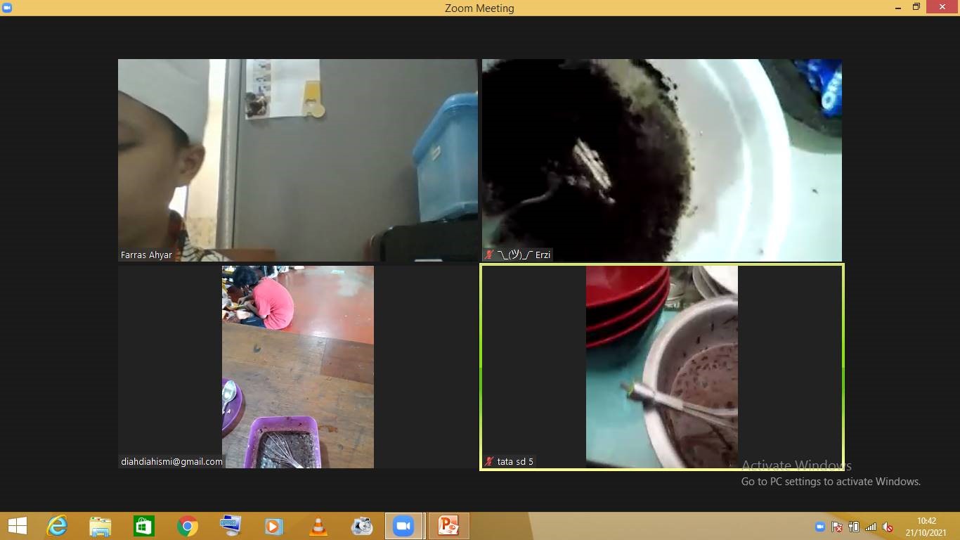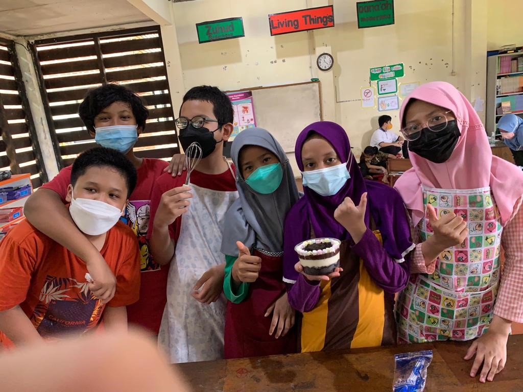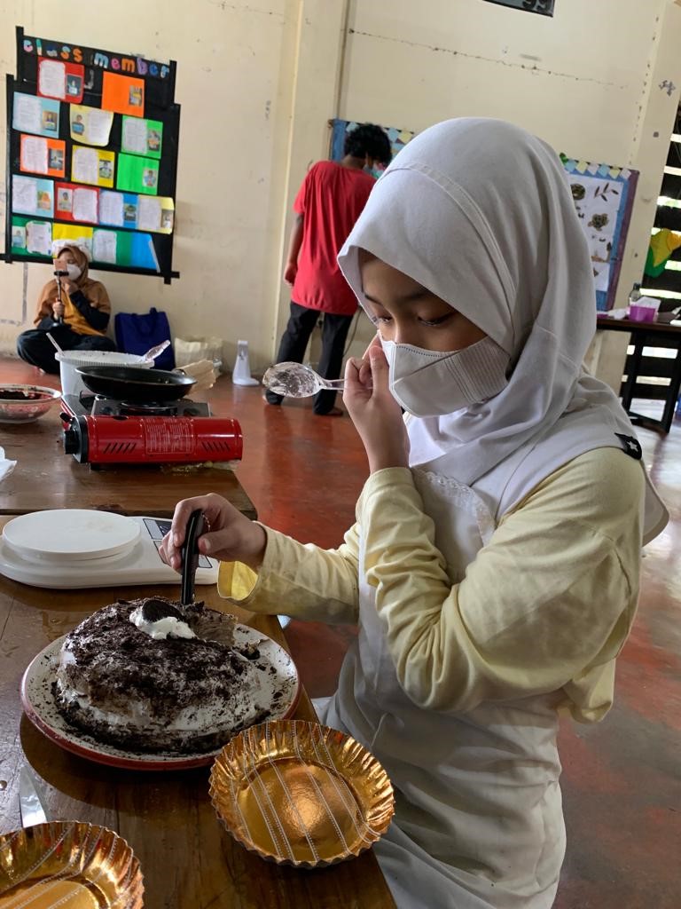 Mengubah ruang kelas menjadi dapur, anak-anak sangat bersemangat dan antusias saat kegiatan ini dan untuk siswa yang melakukan kegiatan cooking secara daring dirumah masing-masing ditugaskan membuat membuat brownies oreo yang resepnya sudah dikirimkan oleh fasilitator namun bahan-bahannya disiapkan dari rumah. Mereka pun sangat senang dan puas dengan hasil masakan yang dibuatnya karena rasanya enak. Selain itu, resep ini juga dapat menjadi referensi ide untuk jualan mereka pada saat Business Day.