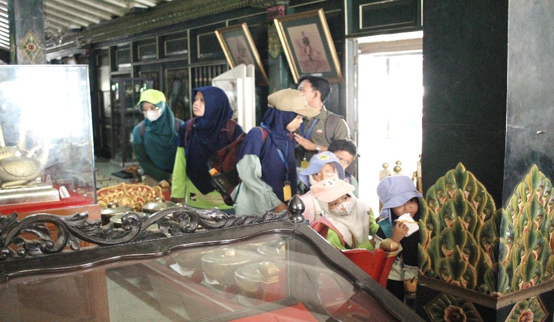 Sesampainya di sana, kami melakukan breafing terlebihdahulu Ketika ingin masuk ke Anjungan Jogja, setelah breafing kami disambut hangat oleh petugas yang ada di Anjungan Jogja, di sana kami dikenalkan nama-nama pakaian adat khas Jogja, pakaian laki-laki disebut surjan, dan pakaian adat perempuan disebut baju kebaya. Selain pakaian kami juga dikenalkan rumah adat Khas Jogja, dan berbagai macam alat musik tradisonal khas Jogja. Siswa-siswi terlihat sangat antusias Ketika berada di Anjungan Jogja, teman-teman tidak hanya mendengarkan penjelasan saja tetapi ada juga yang aktif bertanya Ketika ada hal baru yang belum diketahui.