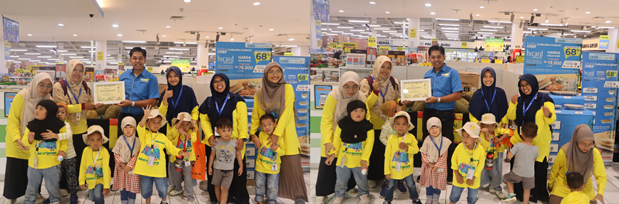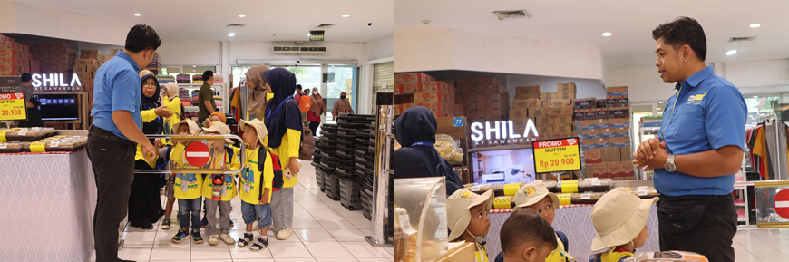 Sebelum memulai shopping anak-anak diajak touring berkeliling Hyfres sambil bernyanyi bersama pak Tino dari Hyfresh. Kemudian anak-anak diberikan informasi mengenai produk-produk apa saja yang ada di Hyfresh. Kami selaku fasil bekerjasama dengan pak Tino untuk mengkondisikan anak-anak supaya tetap tertib dan terarah jalannya dengan diiring lagu naik kereta api dan lagu kingkong...serruu dehh pastinyaa