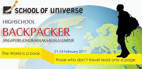Backpacker adalah salah satu program kurikulum utama leadership di School of Universe sejak level SD (Sekolah Dasar) dan SM (Sekolah Menengah). Pada tahun ini, siswa SM 3 dan 4 berkesempatan untuk menjadi warga dunia dengan melakukan perjalanan backpacker ke Singapore dan Malaysia. Selain muatan leadership, kurikulum lainpun menjadi penunjang kegiatan ini, yakni Akhlak, Logika dan Bisnis.