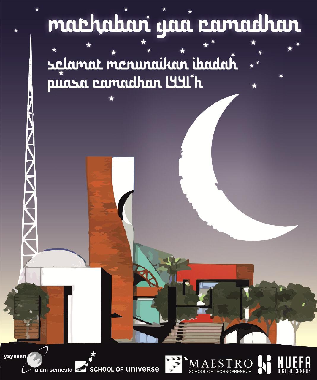 Segenap Keluarga Besar Yayasan Alam Semesta, School of Universe, Maestro School of Technopreneur mewakili seluruh manajemen, guru dan staf mengucapkan Selamat menunaikan ibadah puasa di bulan Ramadhan 1441 H. Mohon dibukakan pintu maaf untuk kesalahan yang kami lakukan. Semoga momen bulan Ramadhan ini dapat kita manfaatkan sebaik-baiknya untuk meningkatkan amal sholih untuk meraih ketakwaan.